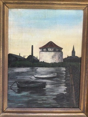 Ubekendt kunstner (19 årh): Krudttårnet i Frederikshavn. Olie på lærred. Sign.: Monogram NJL 29x22 (46x39) 10012