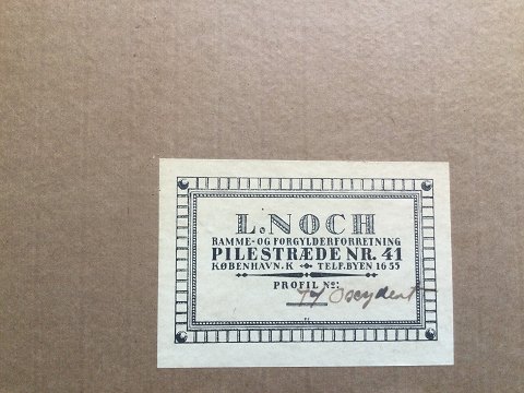 Indrammet i smuk guldramme med tandsnit hos L. Noch i Pilestræde i København.