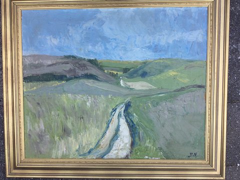 Jørgen Budde Nielsen (1927-87): Sommerlandskab fra Handrup på Mols 1957. Olie på lærred. Sign.: BN Bagpå lærred - Handrup Mols - Budde Nielsen 1957. 70x85 (89x104) 30409