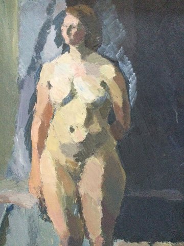 Gerhard Nordstrøm (1925-2019): Nøgen kvinde i interiør 1946. Olie på lærred. Sign.: G. Nordström 46. 76x66 (83x73) 14710