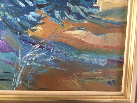 Aage Strand (1910-75): Graner i klitlandskab. Olie på lærred. Sign.: ÅS 60x70 (75x85) Åge Strand