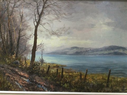 Evelyn Thorbjørn (1911-85): Parti fra Mariager Fjord. Olie på lærred. Sign.: E. Thorbjørn Betegnet - Mariager Fjord. 47x67 (65x85)