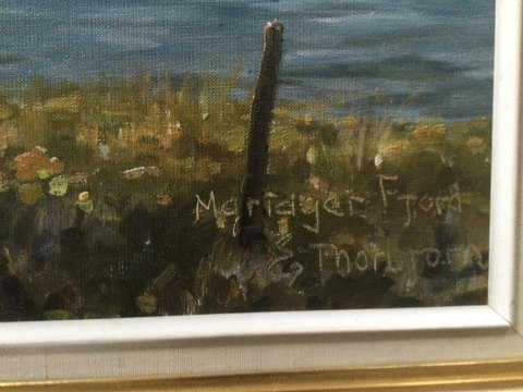Evelyn Thorbjørn (1911-85): Parti fra Mariager Fjord. Olie på lærred. Sign.: E. Thorbjørn Betegnet - Mariager Fjord. 47x67 (65x85)