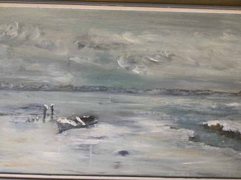 Ninna Fruensgaard (1901-2003): Vinterparti fra Vestkysten 1967. Olie på plade. Sign.: Ninna Fruensgaard 67. Et par næsten utydelige pletter. 40x60 (50x70)