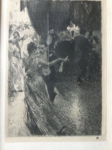 Anders Zorn (1860-1920): Valsen. Offset tryk efter radering på papir 1925. Modern Masters of Etching - Anders Zorn, London. Sign.: Stempel Indrammet i smuk guldramme. 24x16 (36x27)