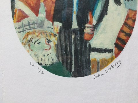 Sven Lidberg (1929-2009): 2 motiver fra festligt lag. farvelitografier på håndgjort papir. Sign.: Sven Lidberg Begge nummer 1/5 30x21 (39x30)