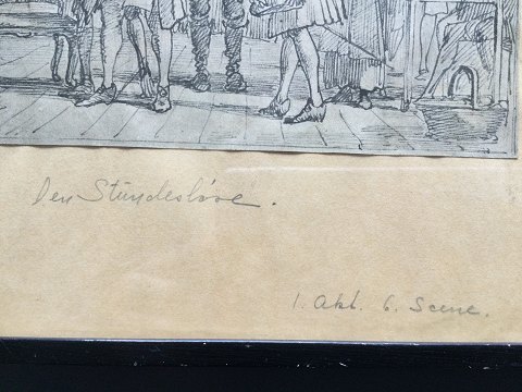 Wilhelm Marstrand (1810-73): Den Stundesløse. I akt - 6 scene. Offset tryk efter tegning af Marstrand. 12x18 (21x25) Indrammet hos Johannes Spring, Horsens. 10124