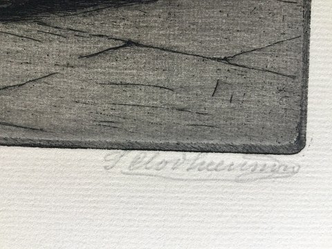 Sophus Clod-Svensson (1867-1941): Mus fanget af musling 1918. Radering på papir. Sign.: S. Clod S.(I pladen) + S. Clod Svensson (bly) Uden ramme. Pladens mål - 16x22½ - arkets mål 28½ x37½ 13224