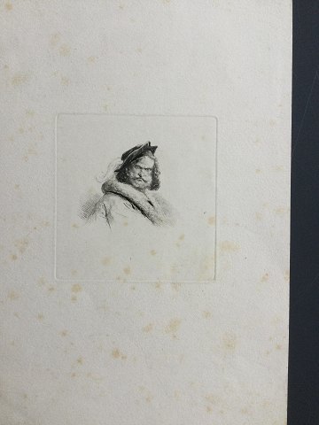 Niels Simonsen (1807-85): Brystbillede af en Ridder. Stylografi på papir. Lidt plettet Usigneret Plademål - 10x9½ - Arkets mål 27½ x 18 13224