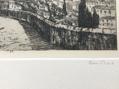 Johan Rohde (1856-1935): Udsigt ind over Rom fra Gianicolo 1934. Radering på papir. Sign.: JR i trykket og Johan Rohde i bly DDRF 1934. Pladens mål 15x22 - Bladets mål 30x40 13224