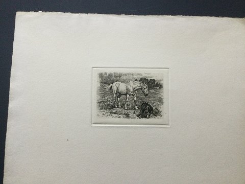 Karl Hansen-Reistrup (1863-1929): Heste på mark. Radering på papir. Sign.: KHR Uden ramme Pladens mål 8x11 (Bladets mål 26x3) 13224