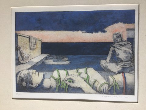 Axel Olson (1899-1986): Komposition - Aften ved havet. Farvelitografi på papir. Nr. 56/90 Sign.. Axel Olson 43x50 (65x78) 15324