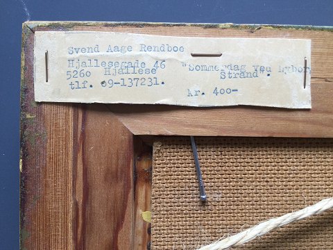 Svend Aage Rendboe (1929-87): Sommerdag ved Nyborg Strand. Udstillingslabel bagpå - "Sommerdag ved Nyborg Strand" Olie på plade. Udstillingsnummer bagpå - 3. Sign.: Rendboe. 28x45 (37x55) 15724