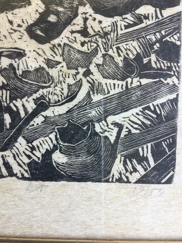Povl Christensen (1909-77): Illustration til Saxo's Amled. Træsnit på papir 1952. Sign.: Povl C. ET 1952 29x20 (31x22) 4922