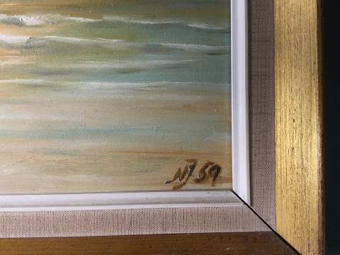 Niels Jensen (1907-2003): Fiskekutter på stranden, Blokhus 1959. Olie på lærred. Sign.: NJ 59. 31x33 (37x40) 19324