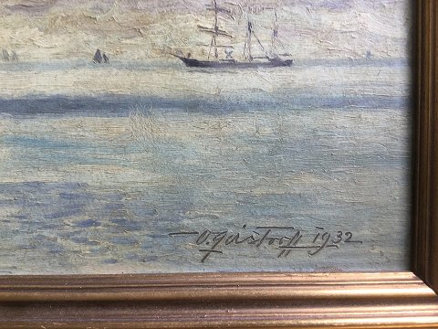 Victor Qvistorff (1882-1953): Sejlskibe ud for kysten 1932. Olie på plade. Sign.: V. Qvistorff 1932. 16x22 (26x32) 21224