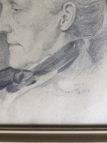 Hans Jørgen Korn (1888-1963): Portræt af ældre kvinde 1913 - måske Fr Nanna Jacobsen, Odense. Bly på papir. Sign.: HJ Korn d. 16/12 1913 21x17 (23x19) 21324