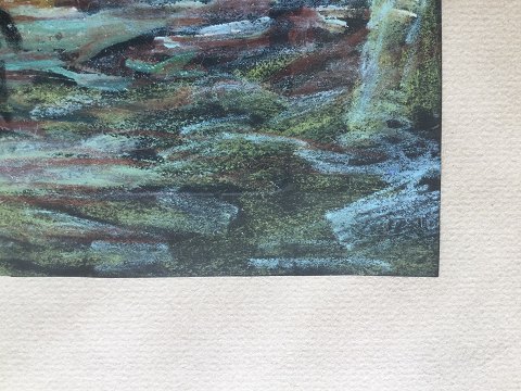 Jens Nielsen (1891-1978): Personer i landskab. Sign.: Jens Gouache på papir. Lille skjold på passepartout forneden - Maleriet perfekt. 25x20 (47x34) 22424