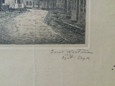Emil Westman (1894-1935): Gadeparti, 1922. Radering på papir. Sign.: Emil Westman 1922. Eget tryk Uden ramme. 29x35