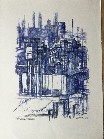 Ole Pihl (født 1952): Eternit Fabrikken 2002. Litografi på papir Nr. 28/40 Sign.: Ole Pihl 02. Betegnet - Eternitfabrikken. Uden ramme 53x38 16116