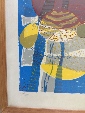 Helge Ernst (1916-91): Komposition. Farvelitografi på papir. Nummer 437/500 Sign.: Helge Ernst (bly) og HE i trykket Indrammet 73x53 32709