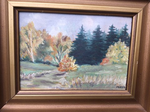 Ubekendt kunstner (20 årh): 2 landskaber: Skovparti - sign.: HA52 Landskab med gårde - Sign.: HA Olie på plader Sign.: HA 12 x 15½ (29x23) 13025