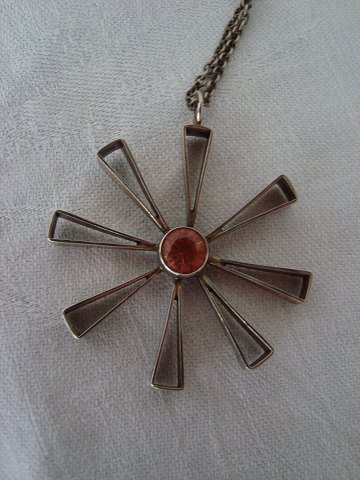Finsk gennembrudt 60'er blomster vedhæng med orange sten (diameter 4 cm) (Kæden 50 cm) (masser af stempler, samt Finland og 925) - kr. 650,00