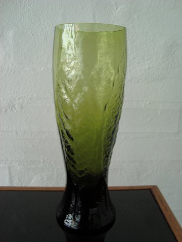 Ubekendt kunstner (20 årh): Oliven grønt kunstglas. Dekoreret med stiliserede blade. Højde - 20 cm og 21 cm.