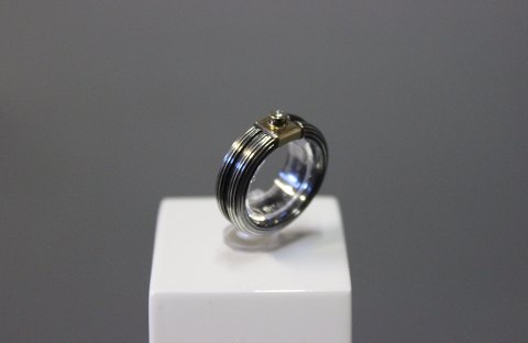 Ring of 925 sterling silver with clear stone, stamped SPJ.