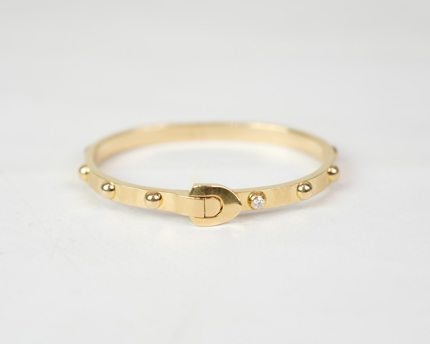 Please contact us for price information18 carat gold bracelet adorned with a diamond from Louis Vuitton made in France. The bracelet has 2 stamps 750 & 16, which indicate that the bracelet is made of 18 carat gold and the size.