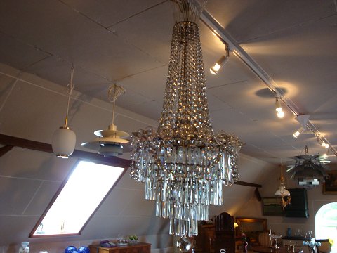 Soldhuge crystal chandelier renoved from year 1920 120 meter in height and 60 cm in dia 5000 m2 showroom