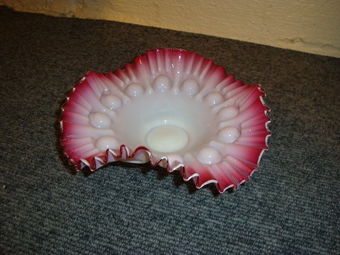 SolgtOpaline skål fra Fyns glasværk i hvid og med lyserød kant, i perfekt stand.