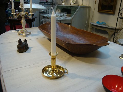 Flat candlestick in brass from 1880. Has been repaired and is of good quality.