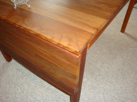 SolgtSofabord med klappe i kirsbærtræ lavet på Haslev Møbelfabrik. Bordet er i fin stand.