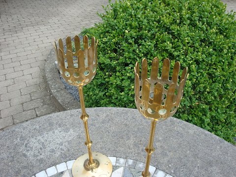 Solgt2 høje Bjørn Vinblad stager i messing. De måler 44cm og er i rigtig fin stand.