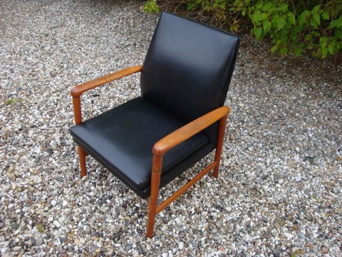 Armchair, Danish design from 1960´s. The chair is in teak and black leather. The chair is restored.