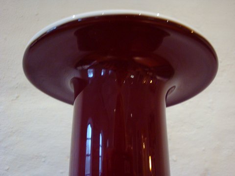 SoldFloor Vase with two colored glass red on the outside and white on the inside from Holmegaard. In perfect condition.