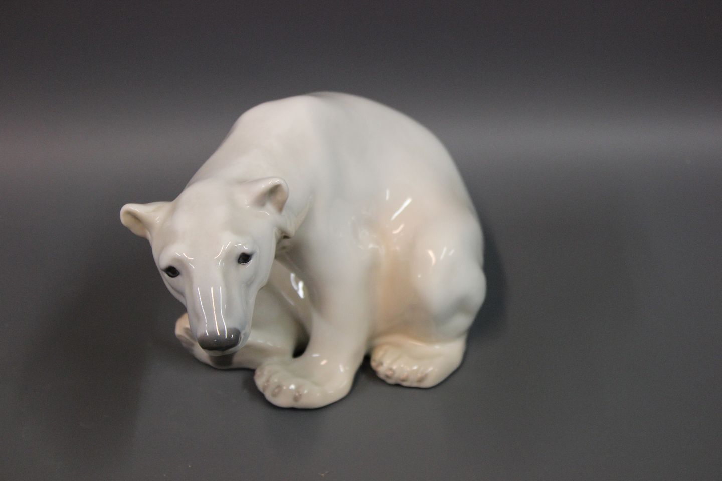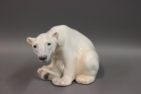 SolgtB&G figur siddende isbjørn nr 1629. Højde 13 cm og længde 20 cm.