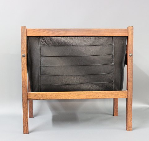 Newspaper holder in rosewood with black leather. In perfect condition
