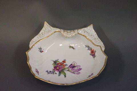 Kongelig Saksisk Blomst. Muslingeformet skål nr. 1607. Skålen er lavet mellem 1870 og 1890.
