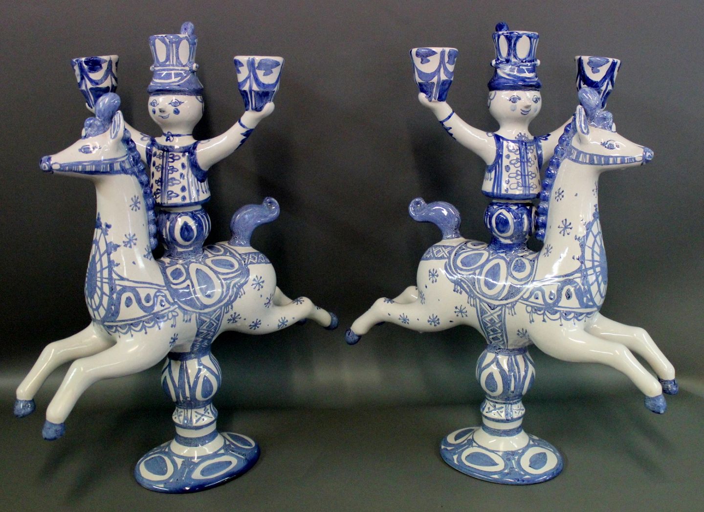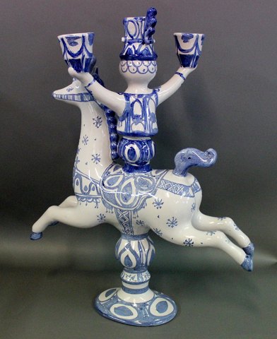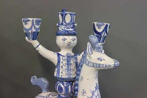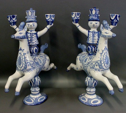SoldA pair of candlesticks by Bjørn Wiinblad. Rider with three candles model L5. The candlesticks are hand decorated and from 1980.