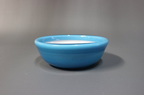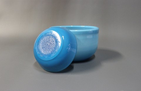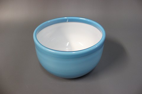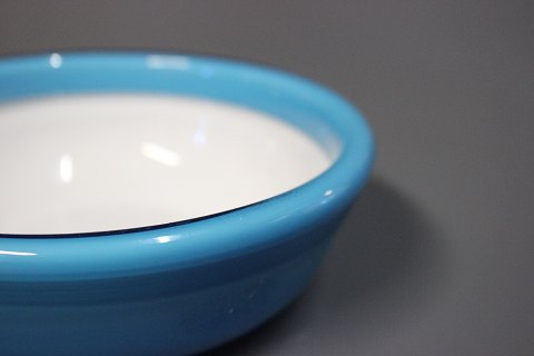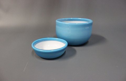 SoldTwo different sized glass bowls with a blue glaze on the outside and White on the inside from Holmegaard and the series Palet.