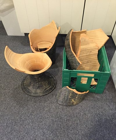 Stor keramik gulvvase, som vi har repareret efter den var smadret i flere stykker.