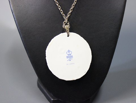 SolgtHalskæde i 925 sterling med stort rundt Royal Copenhagen vedhæng.