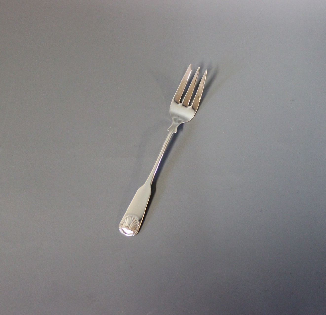 SoldCake fork in "Shell"/Musling", Hallmarked silver.