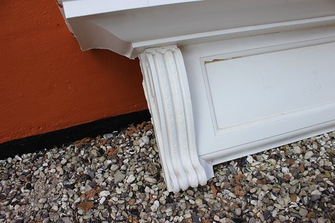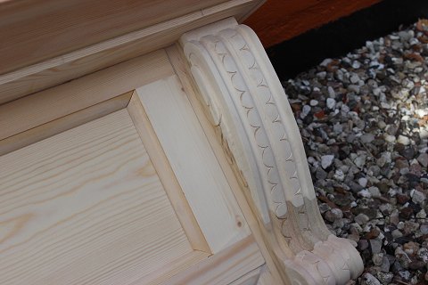Vi laver en del snedkerarbejde, vi har bl.a. netop lavet dette overstykke til en dør for Louisiana. Overstykket en replika lavet ud fra det gamle som ses på billederne.