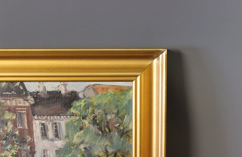 SolgtMaleri med motiv af Københavns gader af Lis Bjergsted.