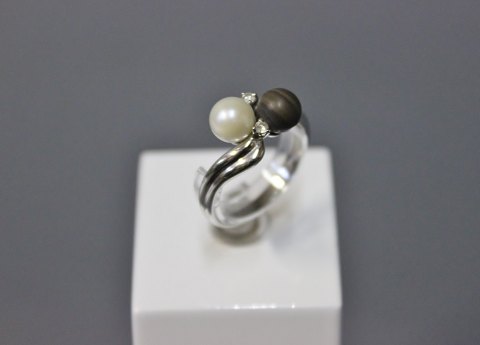 Ring in 14 ct. whitegold with 2 cultured Pearls (0,2 cm).