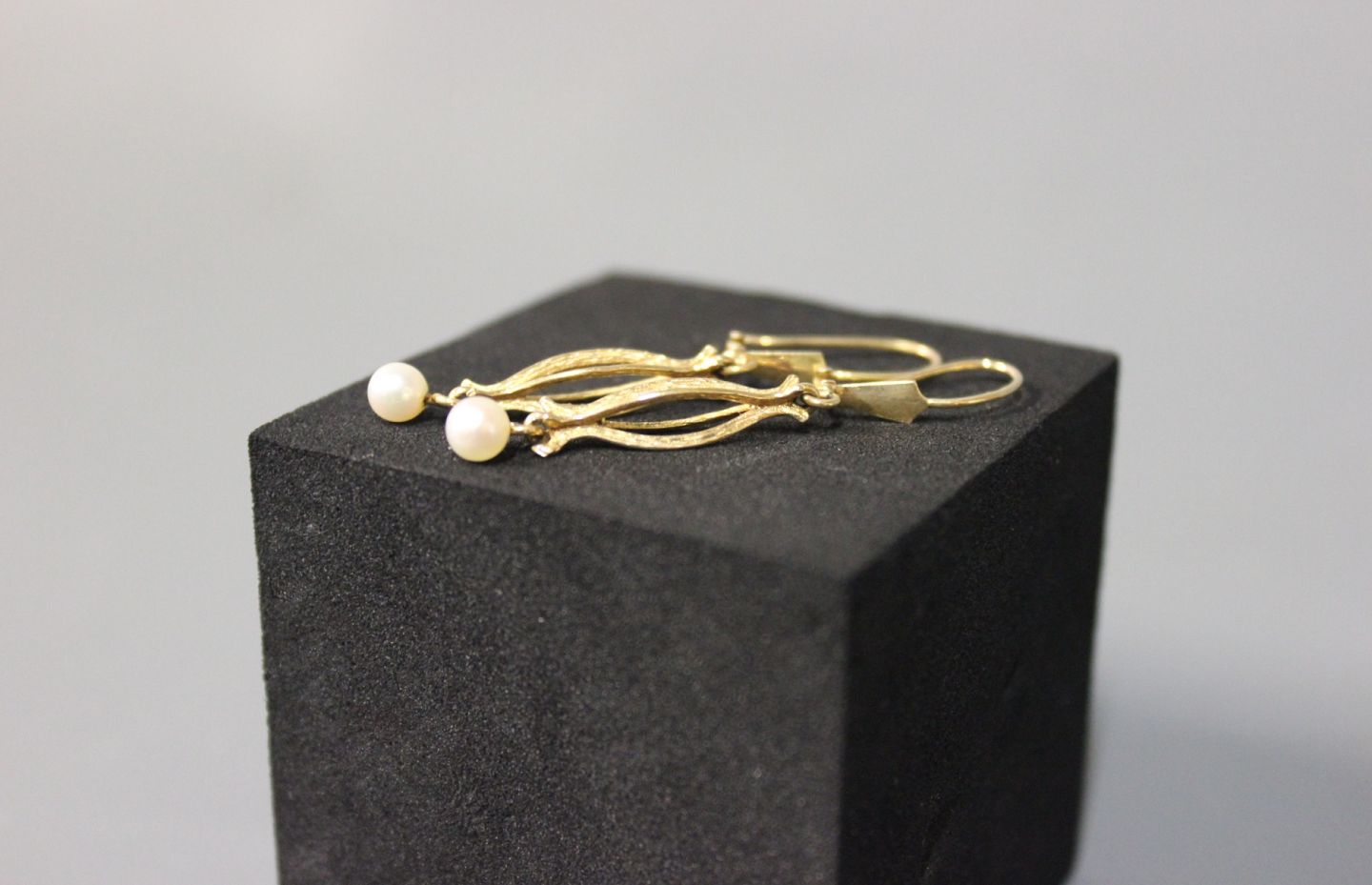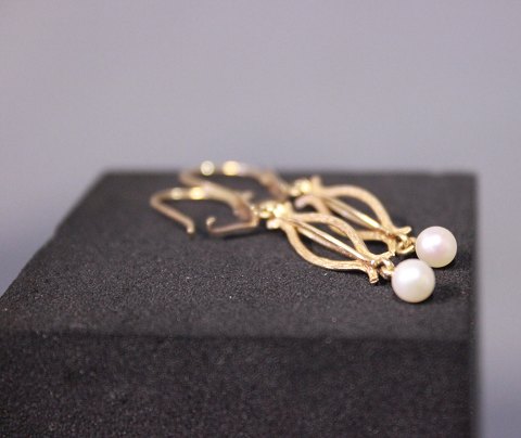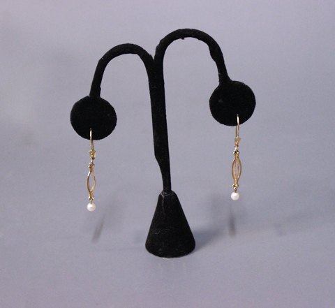 Øreringe i 14 kt. guld med små kulturperler.