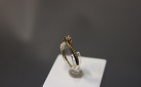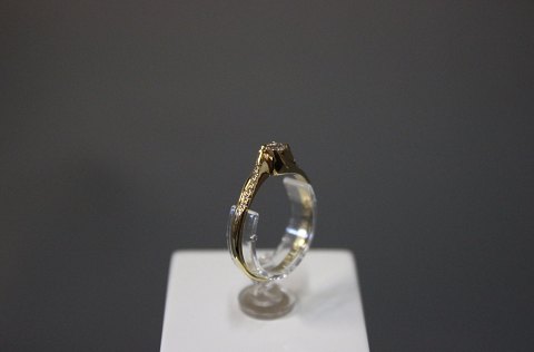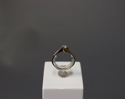 Ring i 14 kt. guld med 1 brillant på 0,30 kt. samt 12 små brillanter på 0,12 kt.